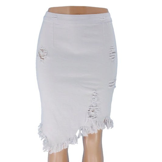 Women Ripped Denim Skirt