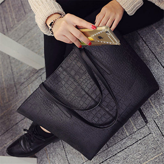 Crocodile Pattern Woven Handbag Women Leather Handbags