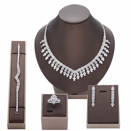 Micro Inlaid Zircon Tassel Necklace Four-piece Set