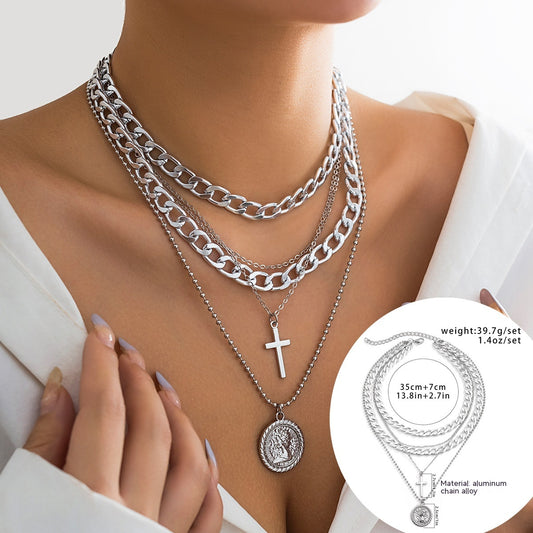 Vintage Butterfly Multi-layer Portrait Metal Women's Necklace