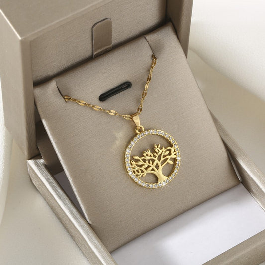 Copper Micro Inlaid Zircon Lucky Tree Necklace