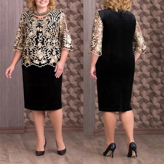 Two Piece Set Solid Lace Dress Set for Women