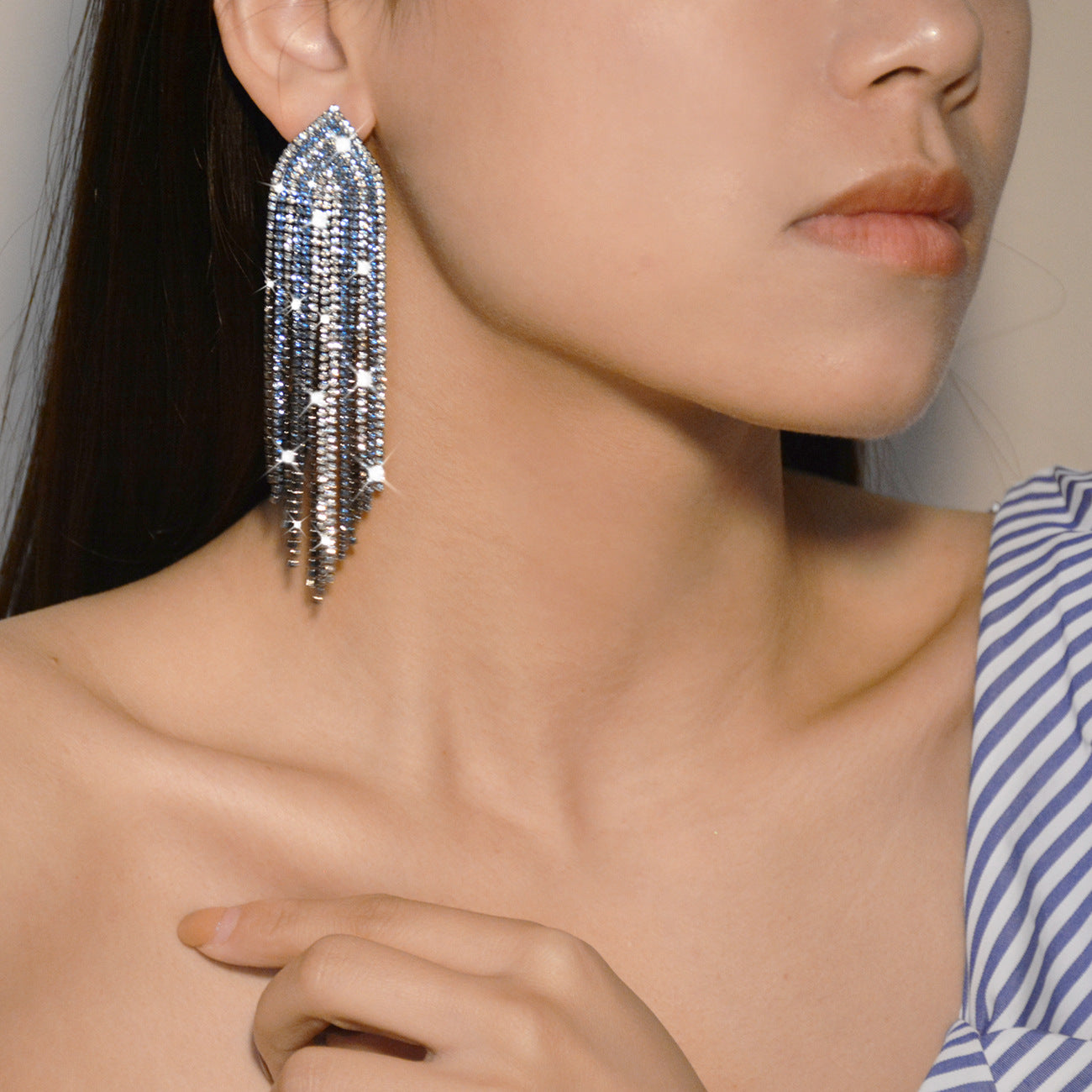 Geometric Two-tone Diamond-studded Tassel Earrings Exaggeration